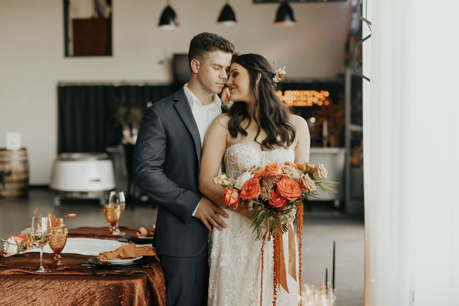 Our color scheme was inspired by the interior of a luxurious Porche. The colors include rust, spice orange, copper, black, champagne, and other shades of neutrals. This scheme is sure to knock the socks off any fall wedding in Oklahoma and beyond.
