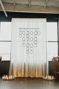 A second option is to use the indoor space like we did with a beautiful 15 foot chiffon draped backdrop from Soft Touch Draping and flip to your sweetheart table or cake table during the reception.